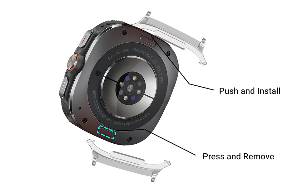 The precision-fit connectors lock smoothly into the Samsung Watch Ultra, ensuring reliability for daily wear, workouts, and outdoor activities.